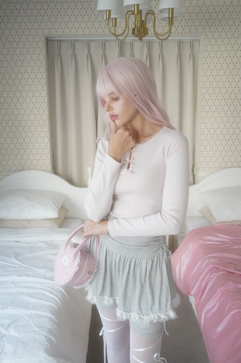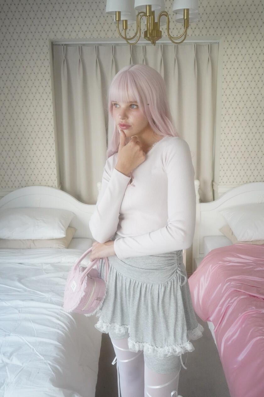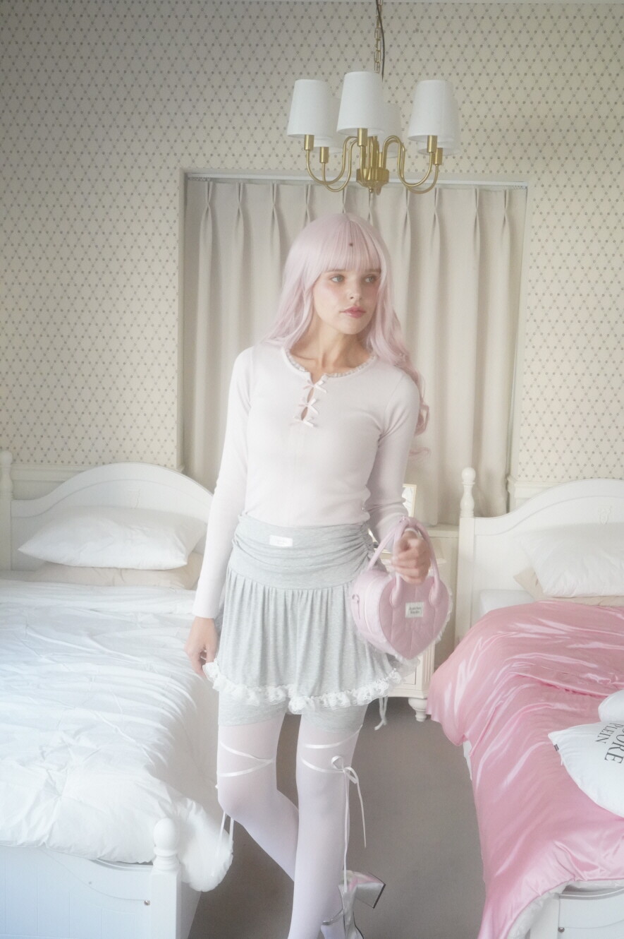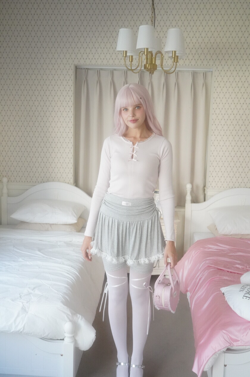 레이스 밑단과 셔링이 사랑스러운 발레코어 바이커 스커트팬츠입니다.