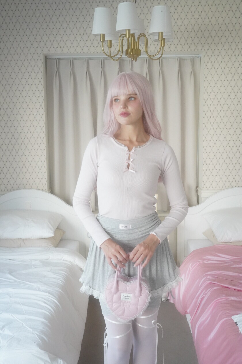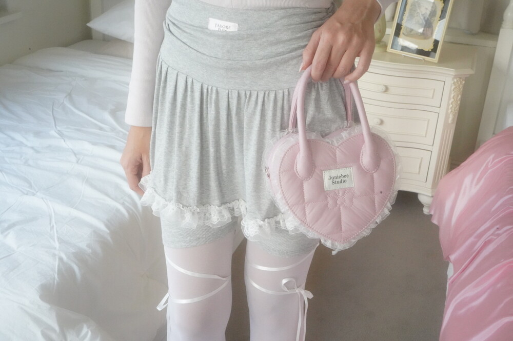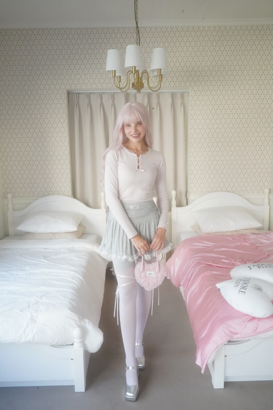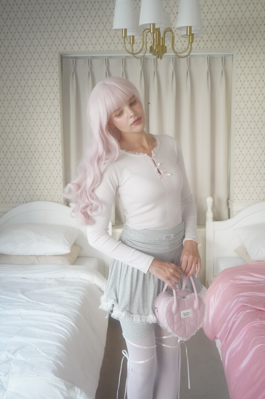 레이스 밑단과 셔링이 사랑스러운 발레코어 바이커 스커트팬츠입니다.