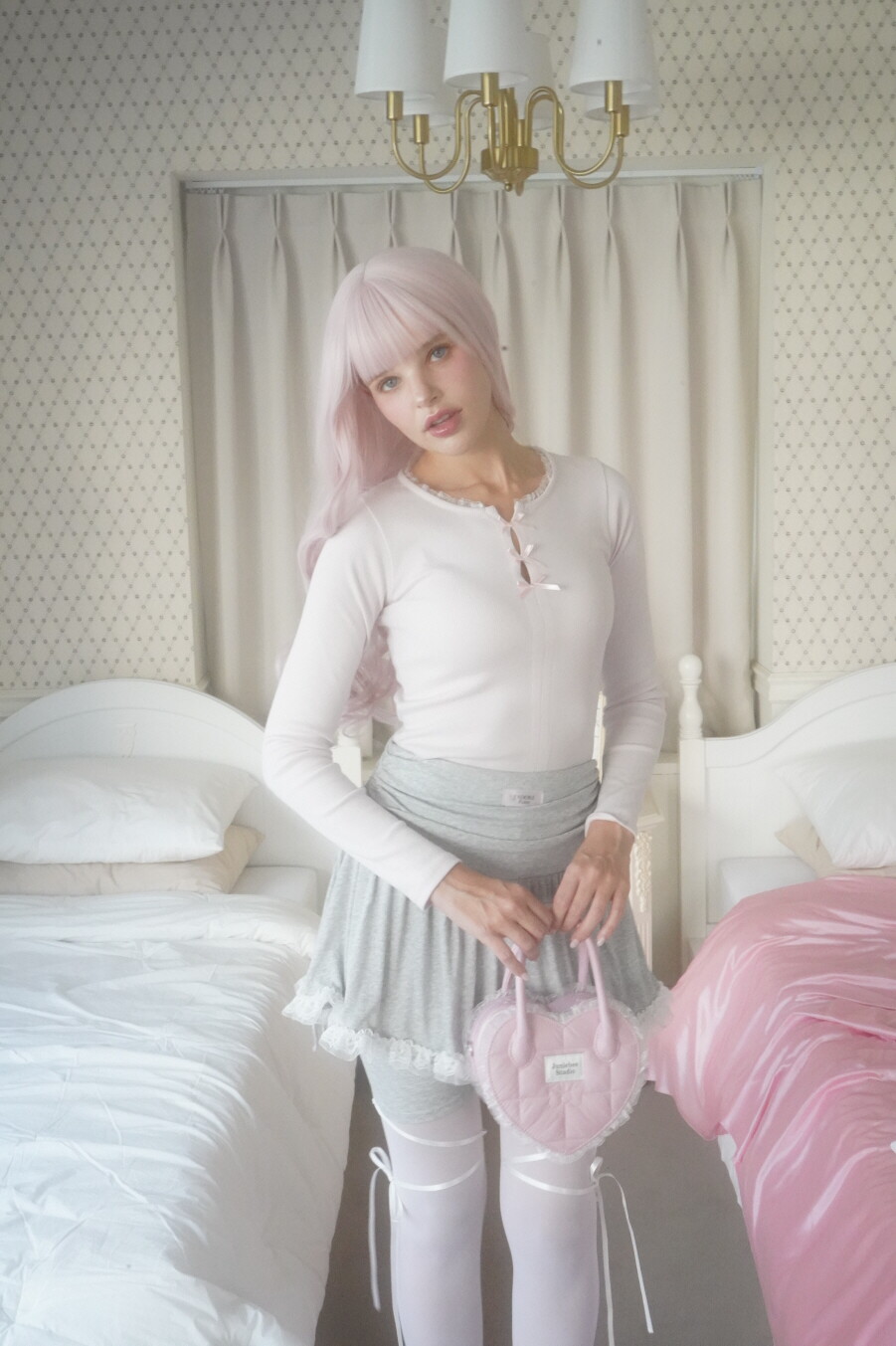 [아이브 착용] Lace Biker Skirt Pants (GREY)