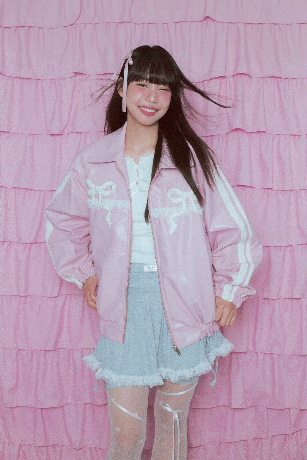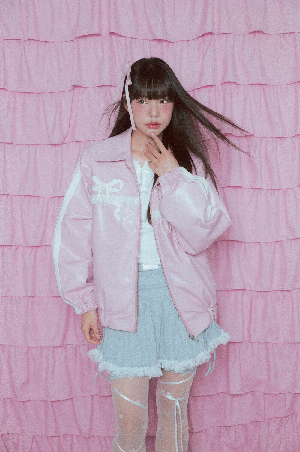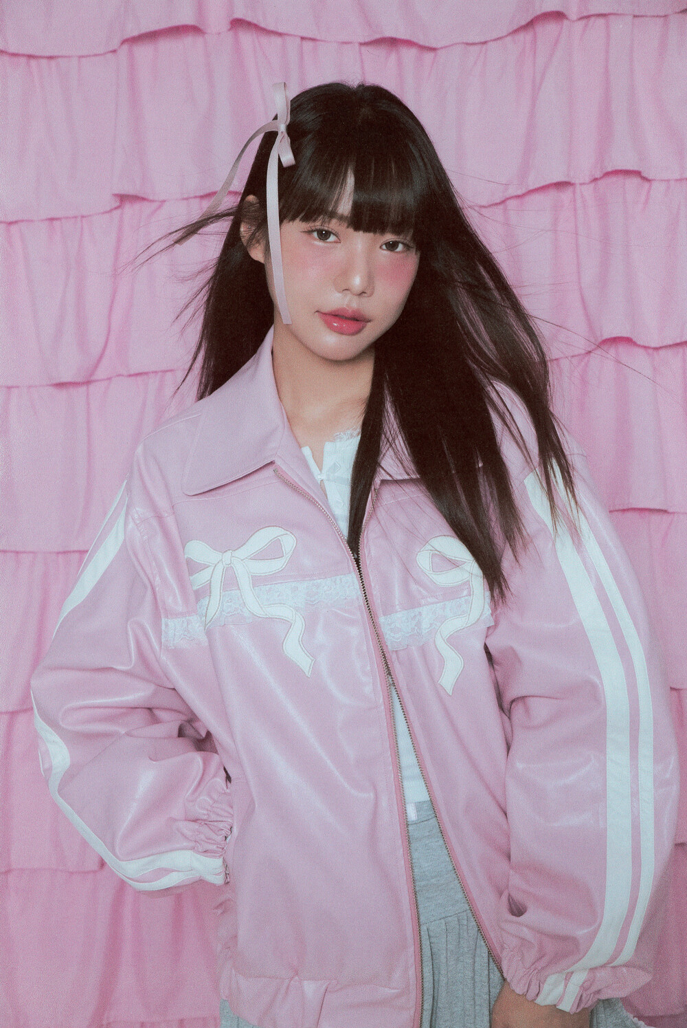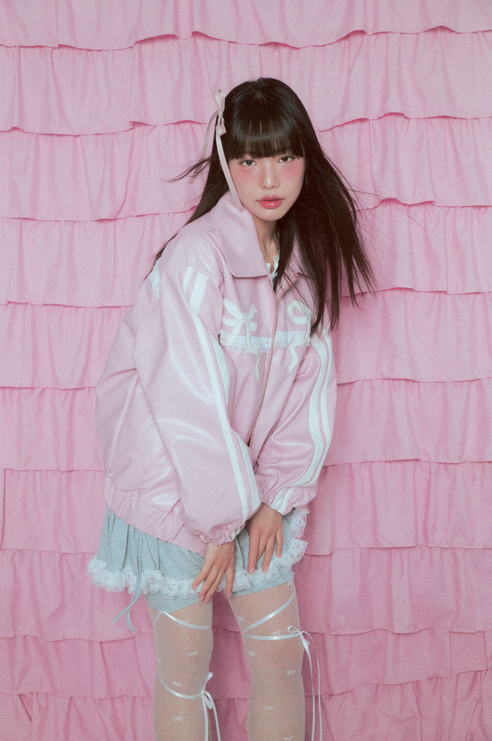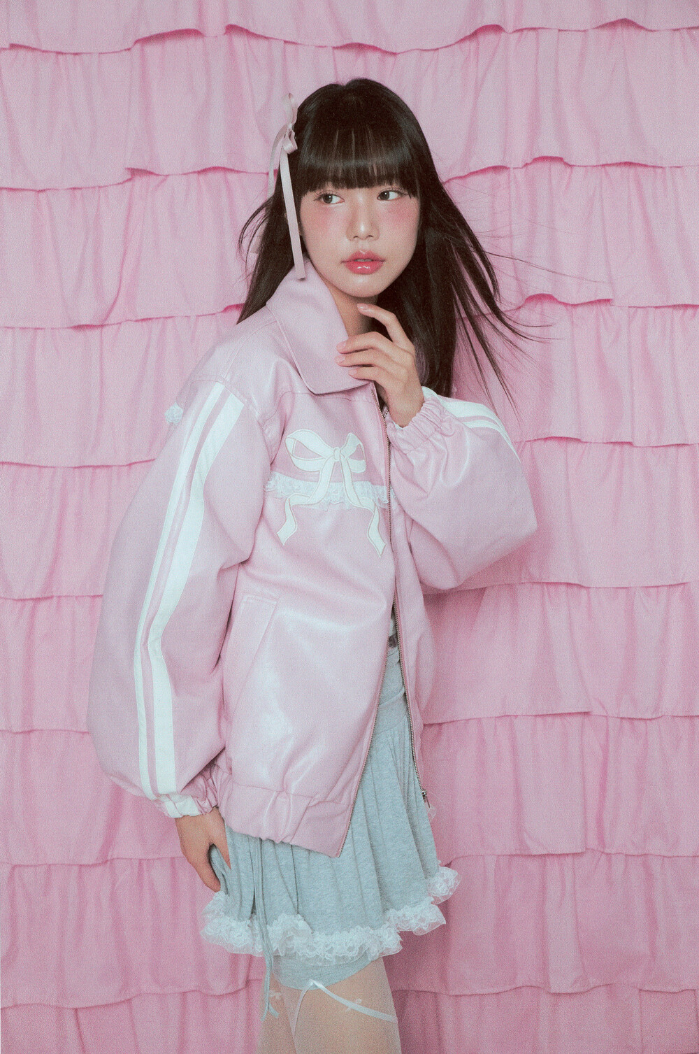 밑단과 소매밑단의 밴딩으로 인해 아방한 핏감이 연출되며