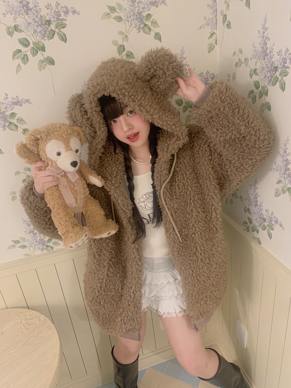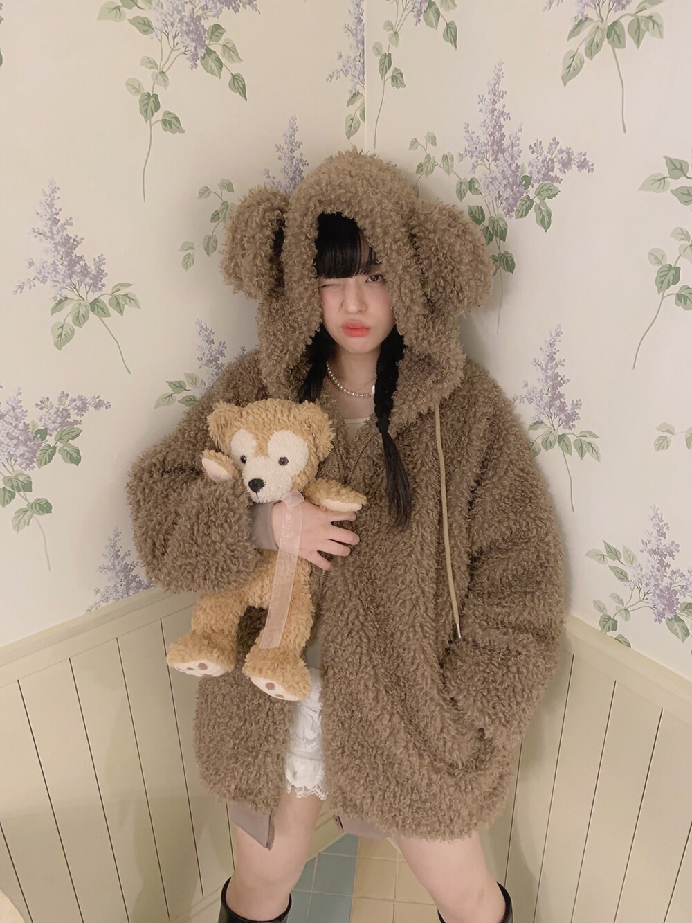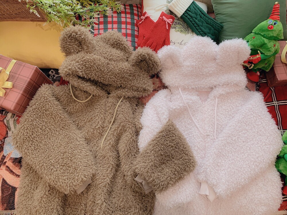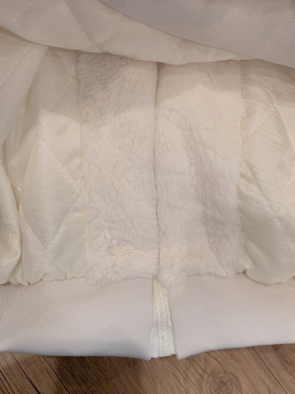 🖤 퍼원단 특성 상 지퍼쪽이 비게 될 경우 중앙절개선이 쉽게 드러납니다. 최대한 시접 작업을 타이트하게 하여 지퍼를 끝까지 올렸을 때 집업 티가 나지 않아 더욱 귀여워요👼🏻🎀🤍
