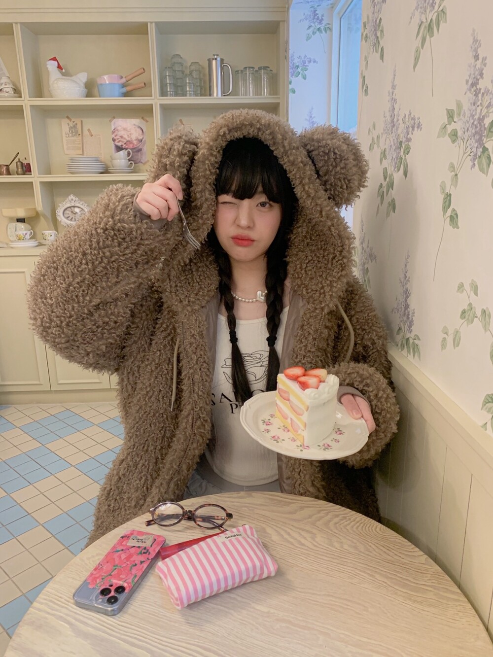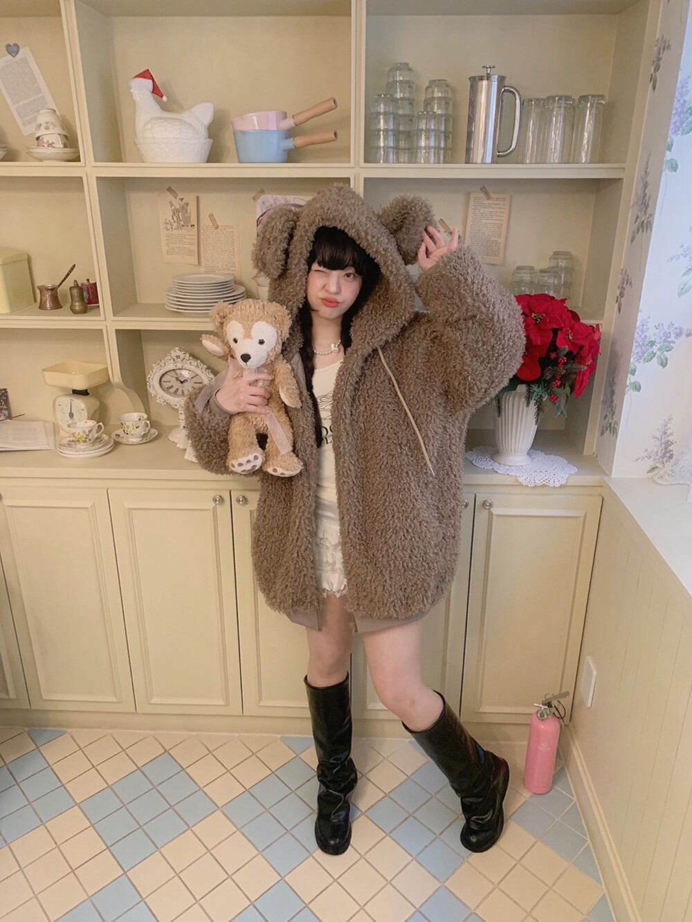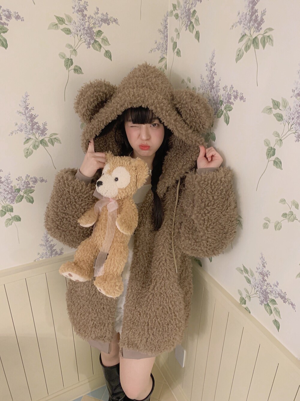 🖤 퍼원단 특성 상 지퍼쪽이 비게 될 경우 중앙절개선이 쉽게 드러납니다. 최대한 시접 작업을 타이트하게 하여 지퍼를 끝까지 올렸을 때 집업 티가 나지 않아 더욱 귀여워요👼🏻🎀🤍
