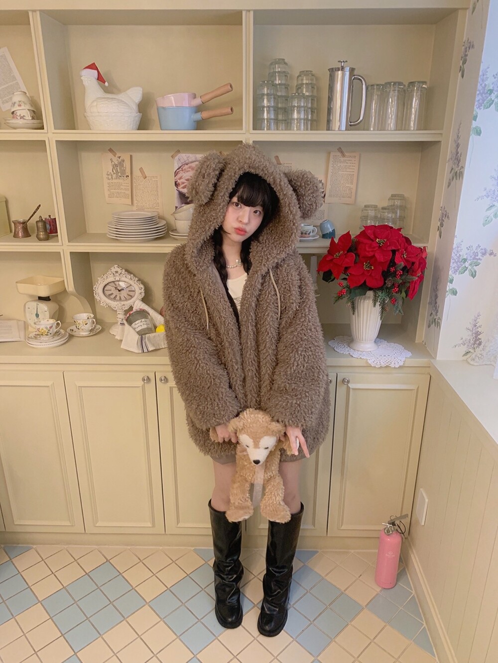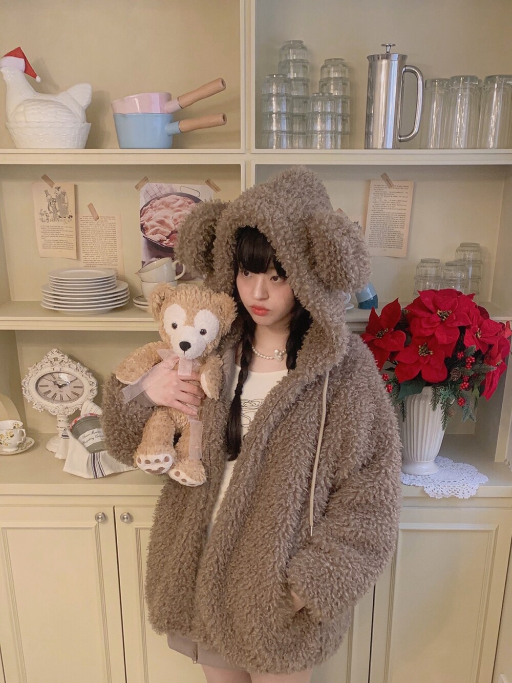 특히나 푸들같은 컬리헤어 원단 중에서 단가가 정말 높은 제품이라 실제 푸들처럼 만져보면 복실하고 부드럽답니다! 두가지 원단 모두 모량도 많아 빽빽하고 핏도 아방하고 귀엽게 잘 잡힙니다.