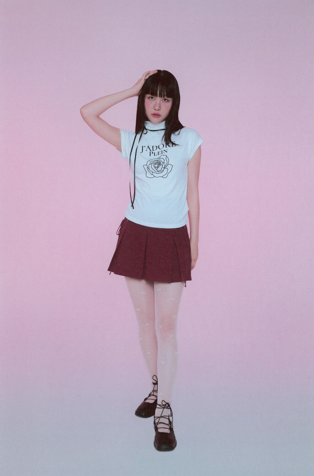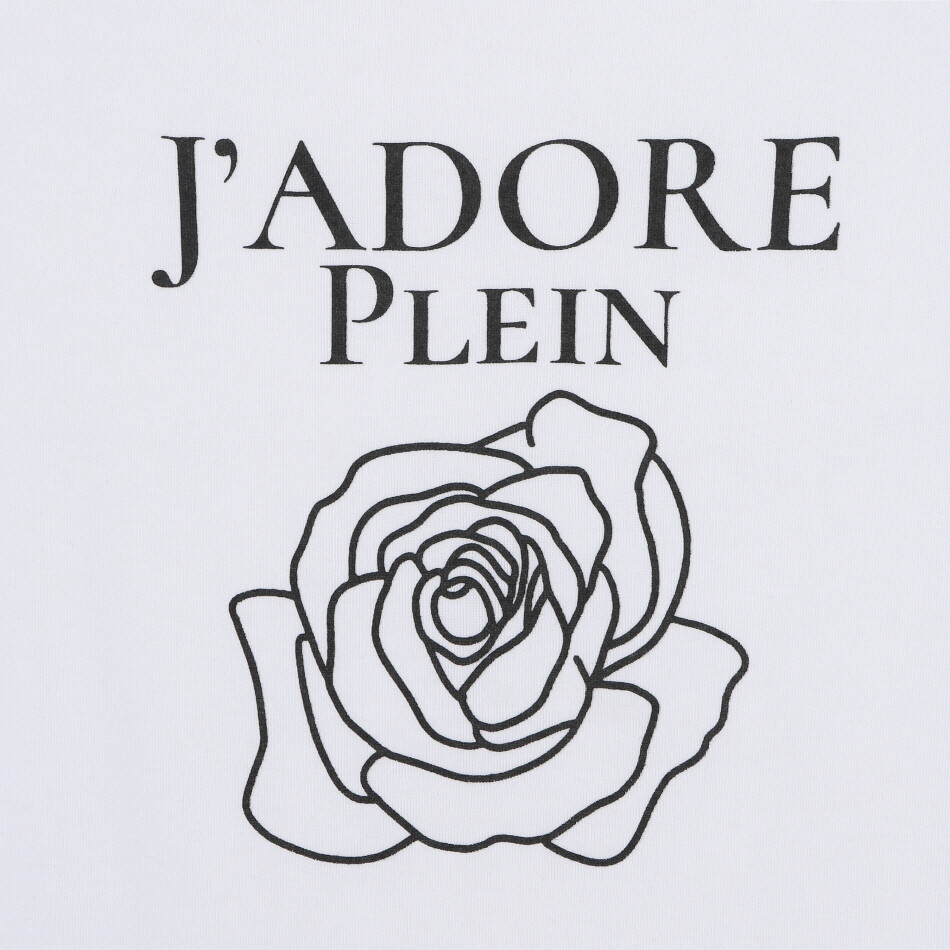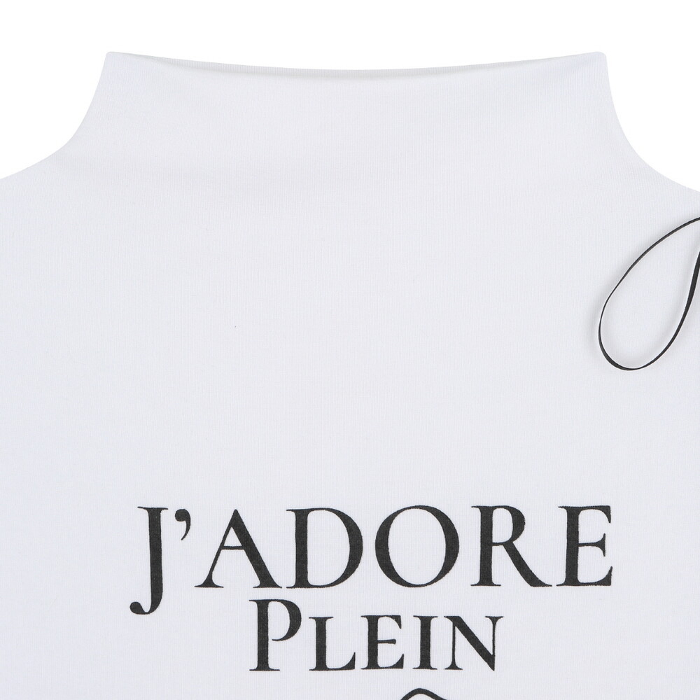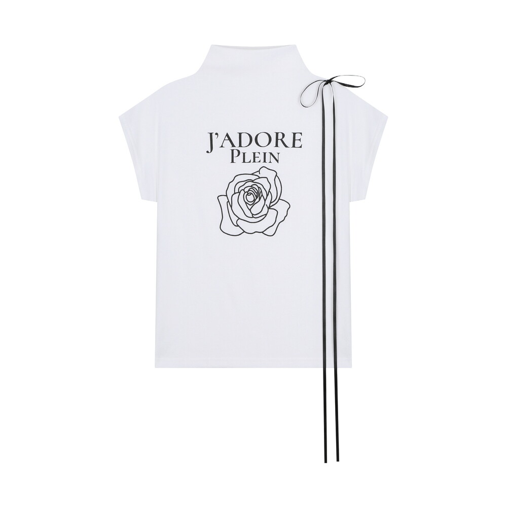 J'adore Plein Signature Ribbon Half-neck T-shirts (White)