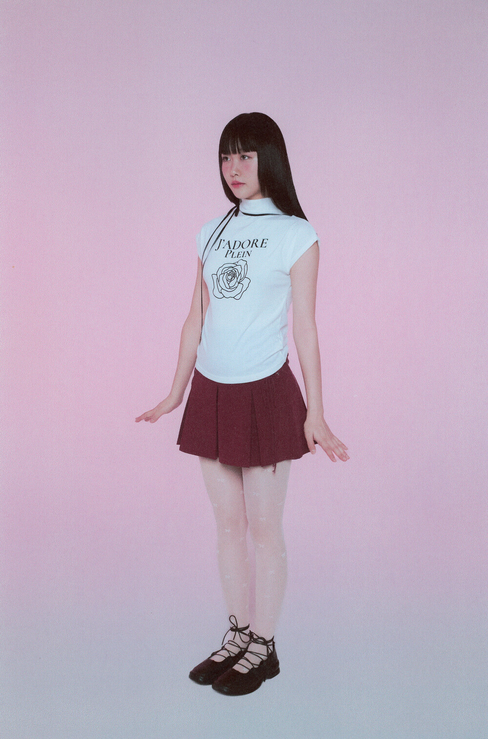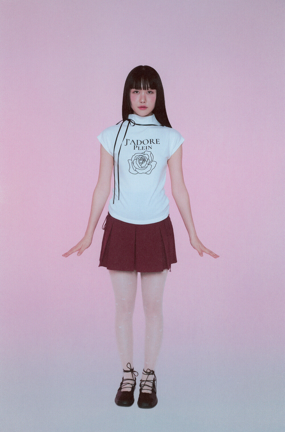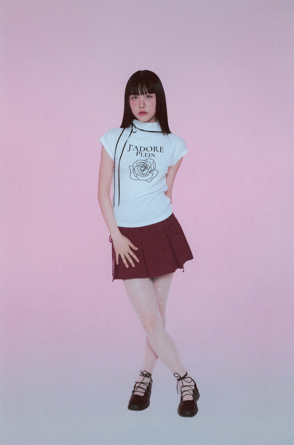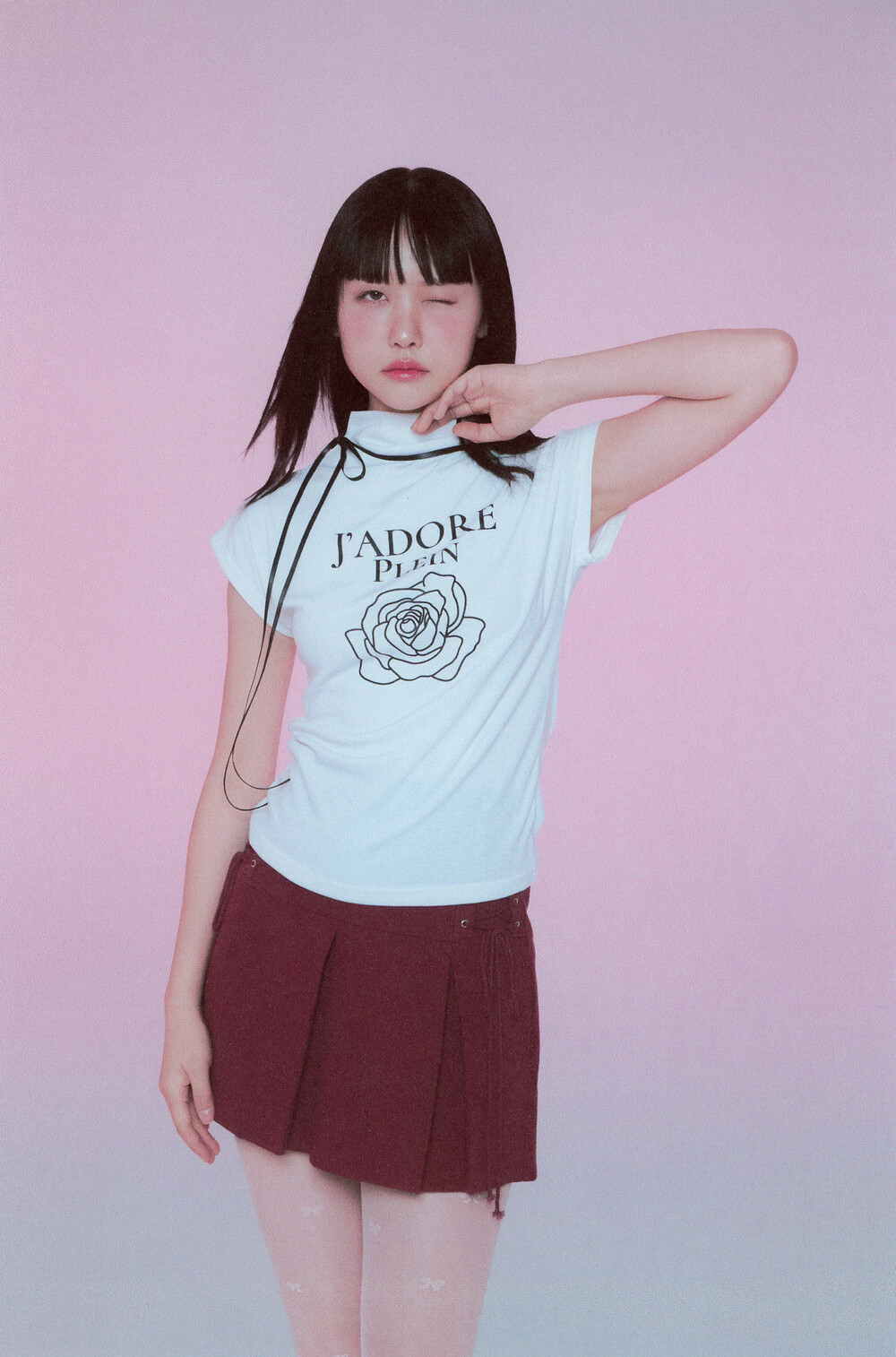 J'adore Plein Signature Ribbon Half-neck T-shirts (White)