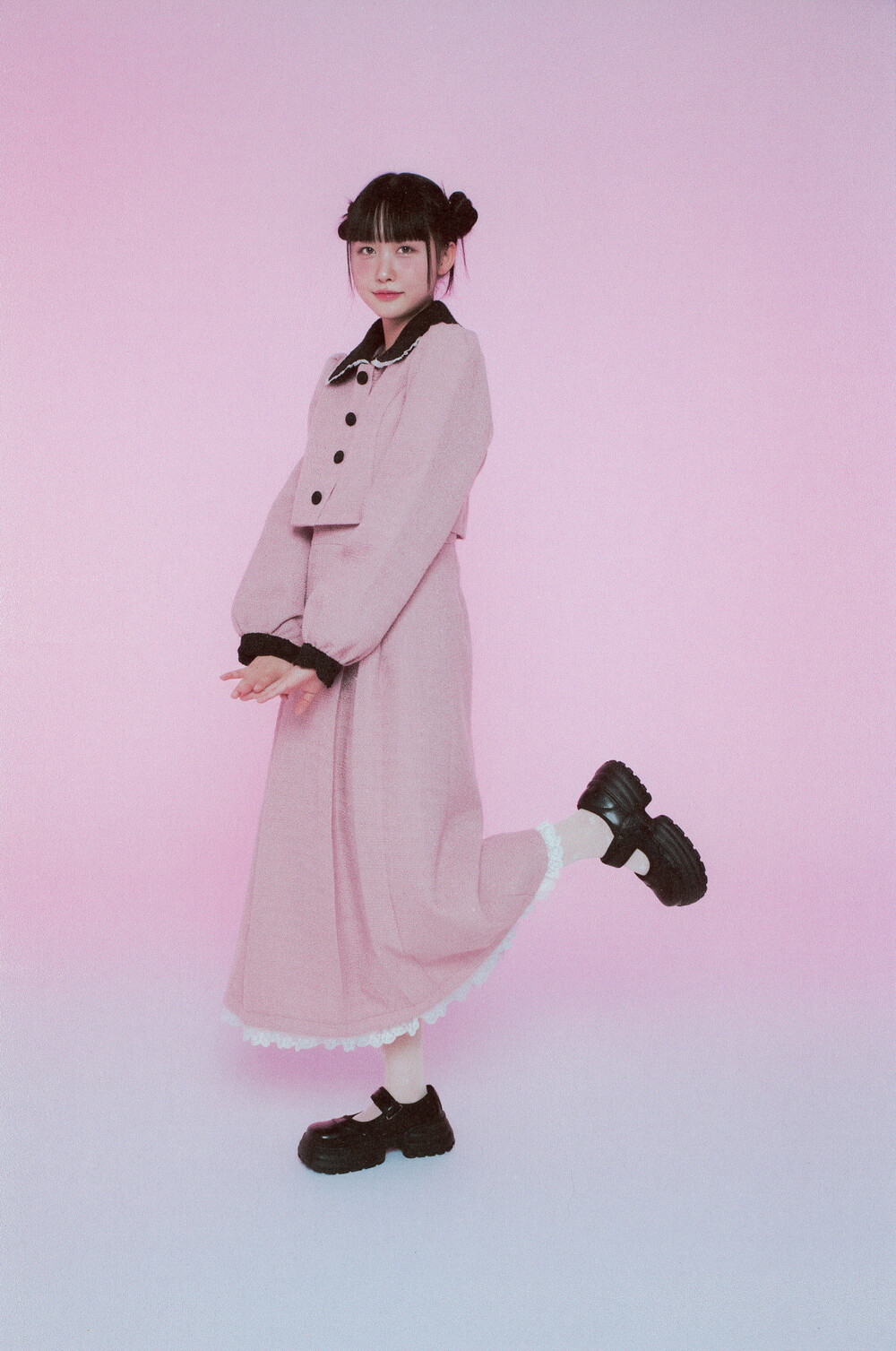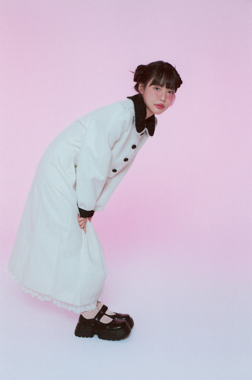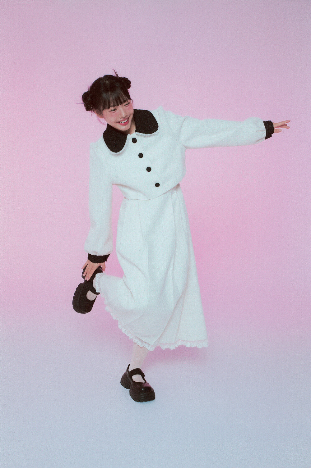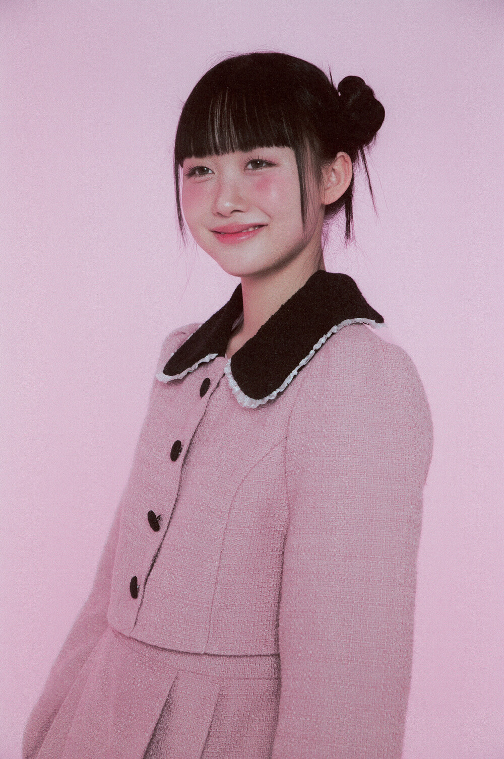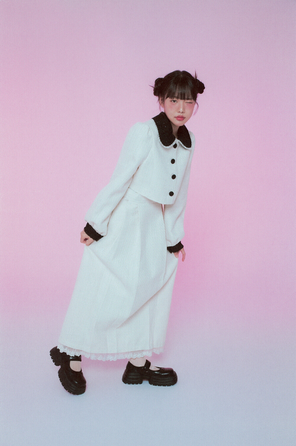 적당한 크기의 라운드 트위드 카라와 레이스 디테일이 더욱 발랄한 무드를 연출해줍니다.