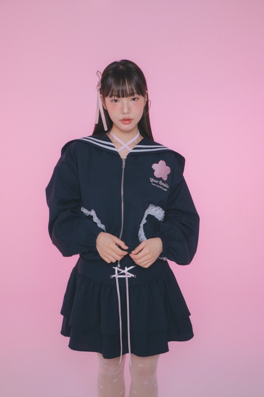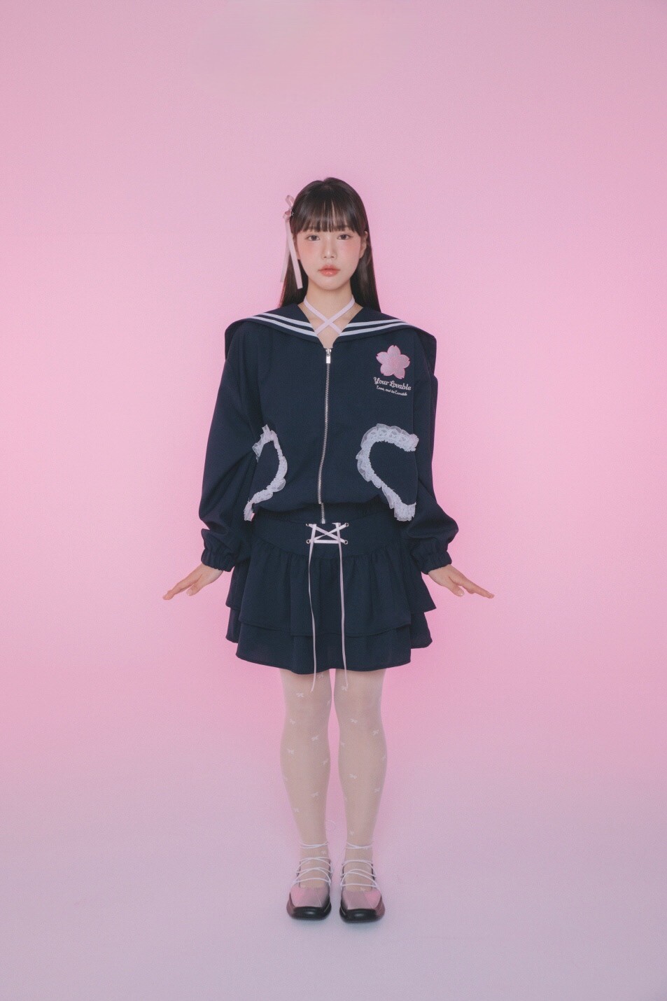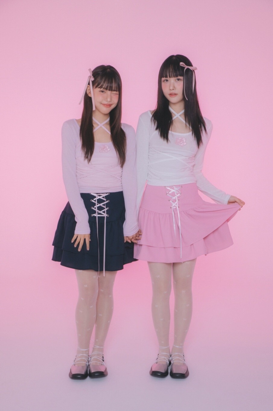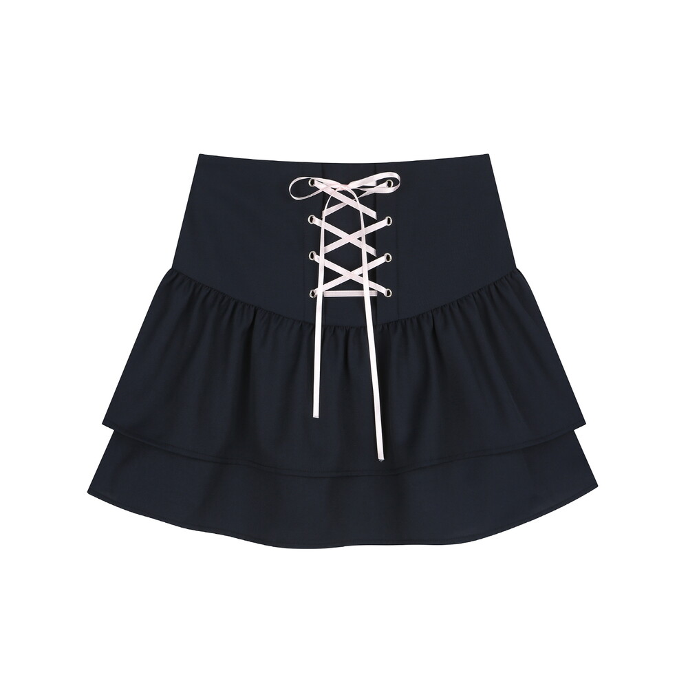 리본 코르셋 디테일이 사랑스러운 코르셋 2단 캉캉스커트입니다.