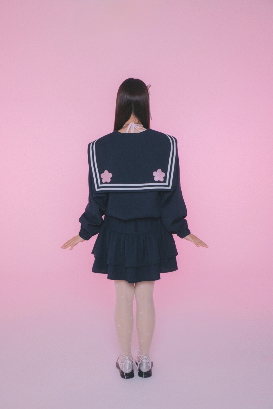스커트 셔링을 풍성하게 잡아 어떤 각도에서도 풍성한 핏으로 연출했습니다.