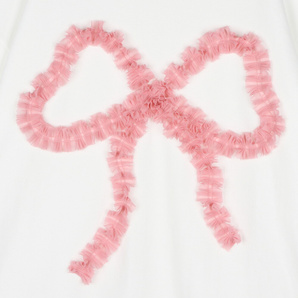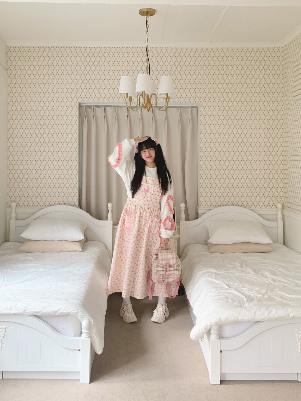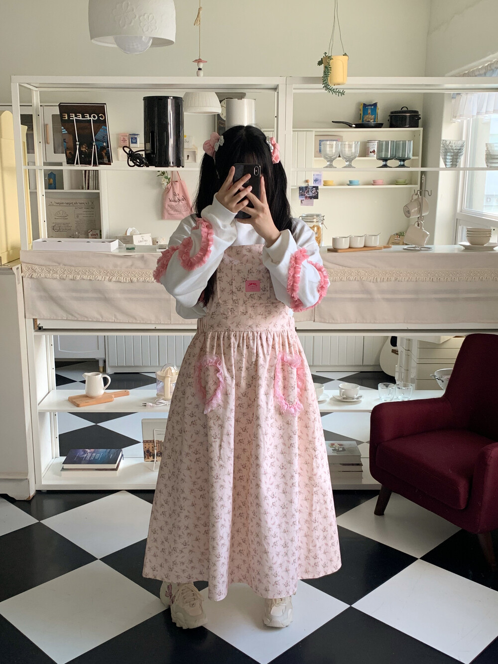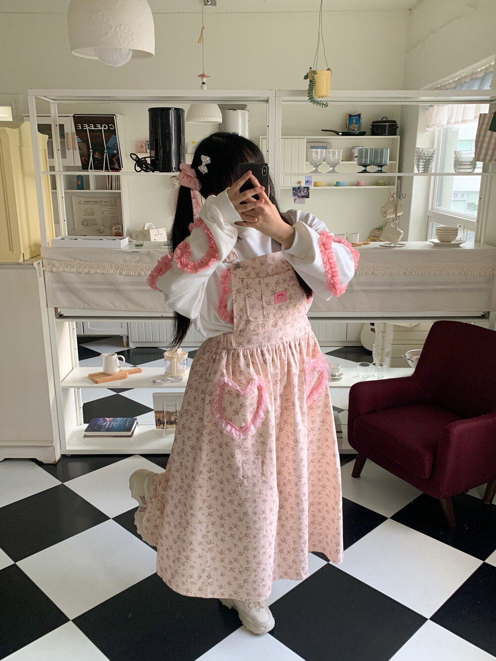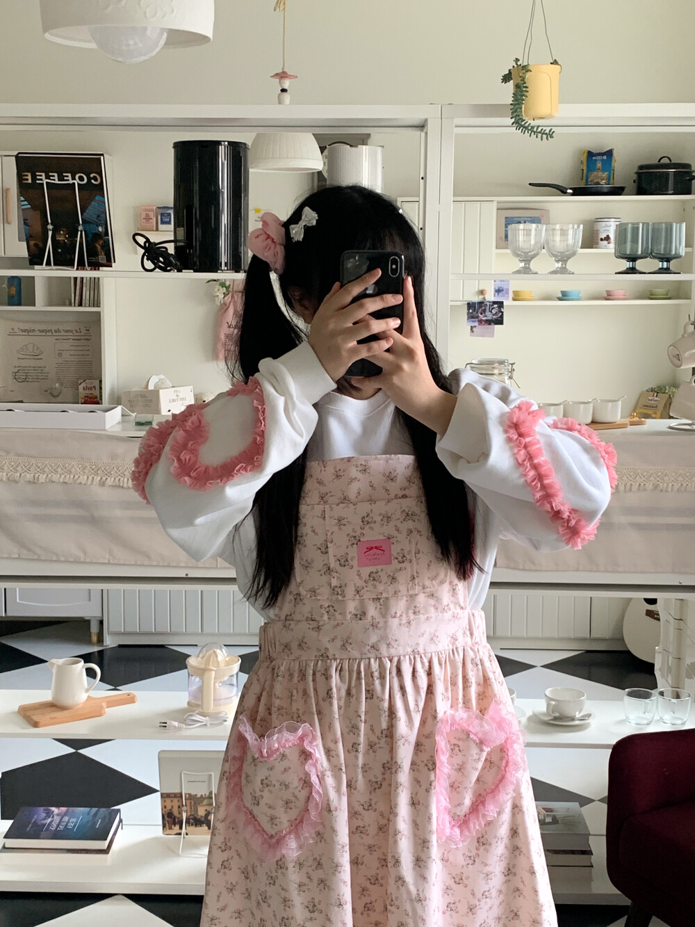 양 팔의 하트가 비대칭으로 들어가 크기도 위치도 다르고 전면 리본 디테일도 레이스를 박아 연출해